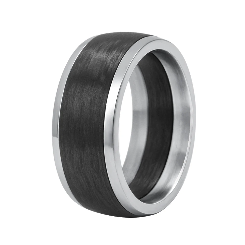 Polished and Matt Finish Stainless Steel Carbon Fiber Ring for Mens Jewelry Plain Carbon Fiber Mens Wedding Bands